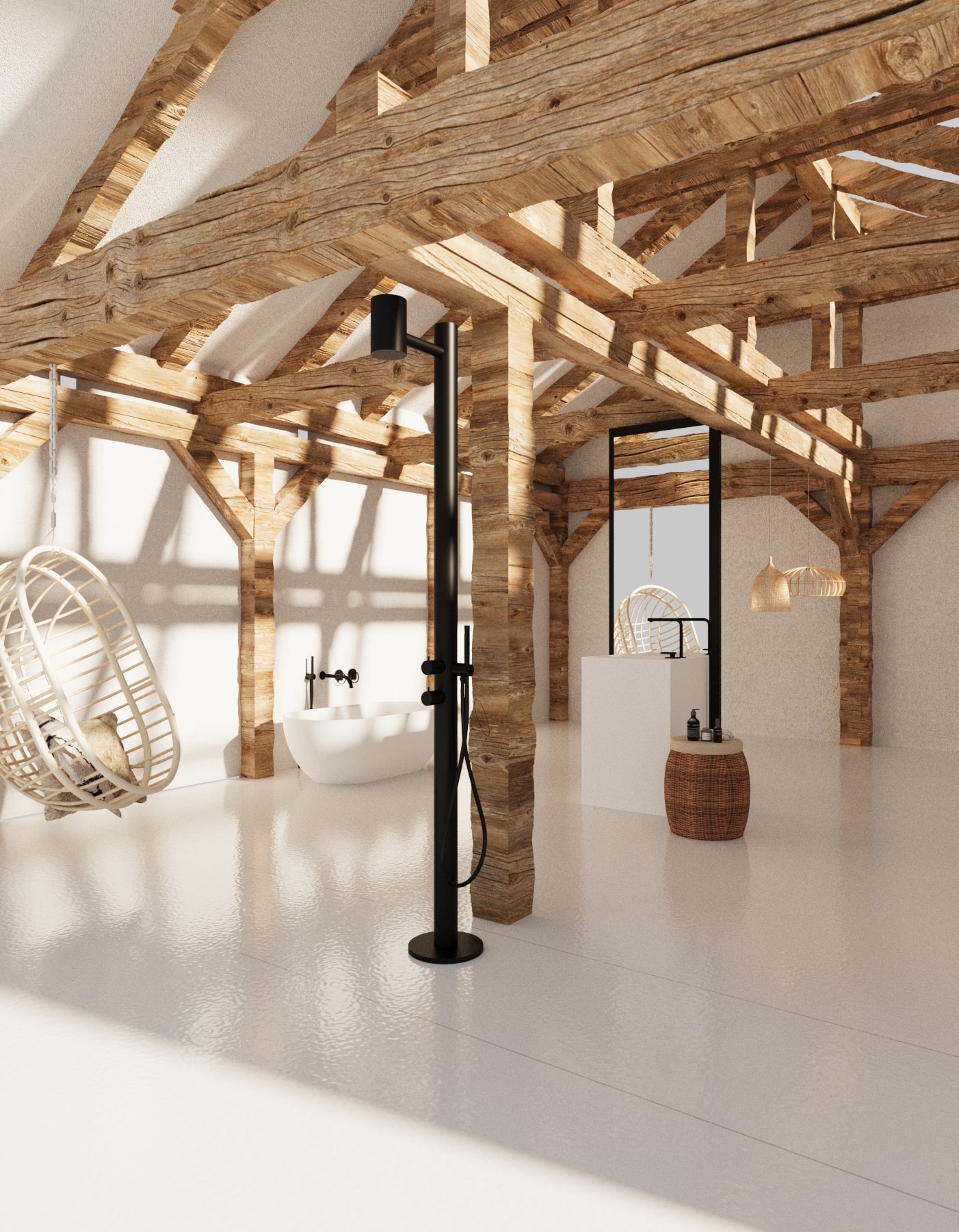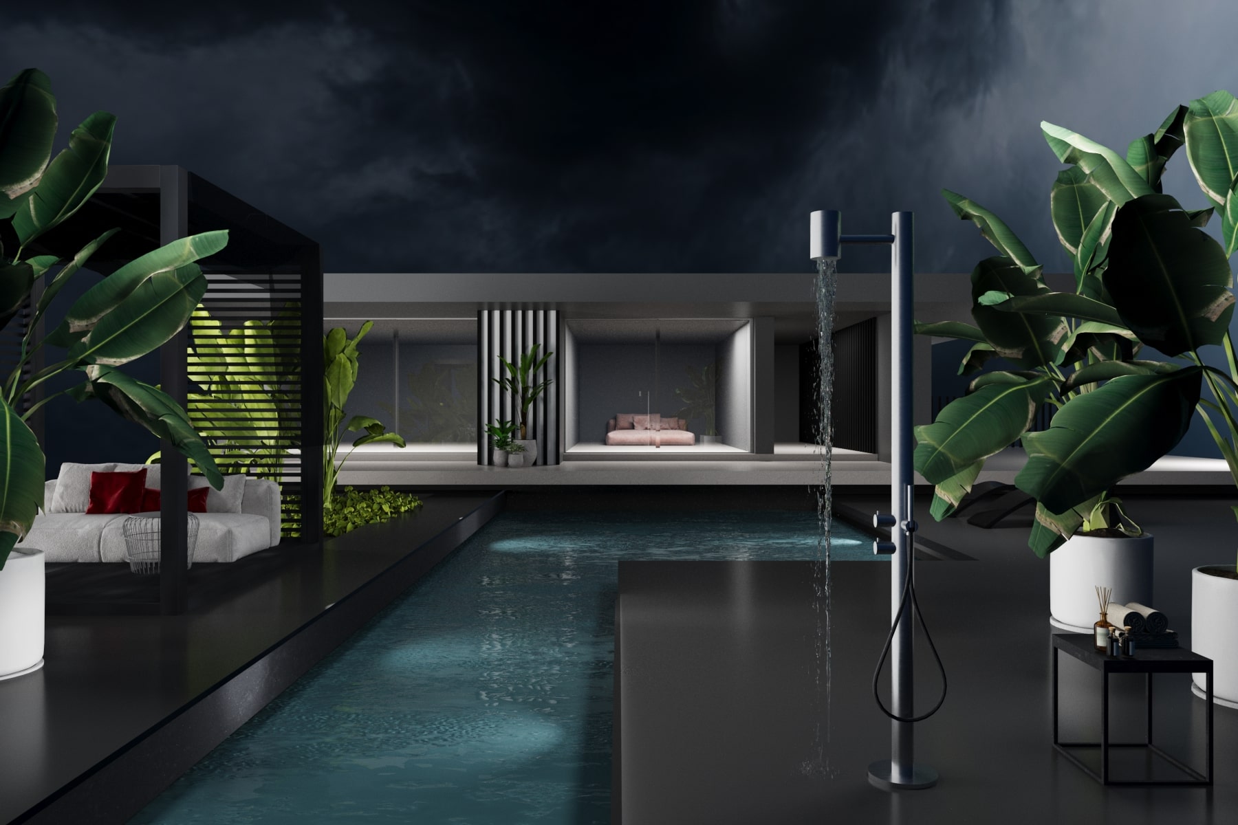 This faucet can be ordered in five colors: matte steel, shiny steel, matte black, matte gold, matte rose gold.